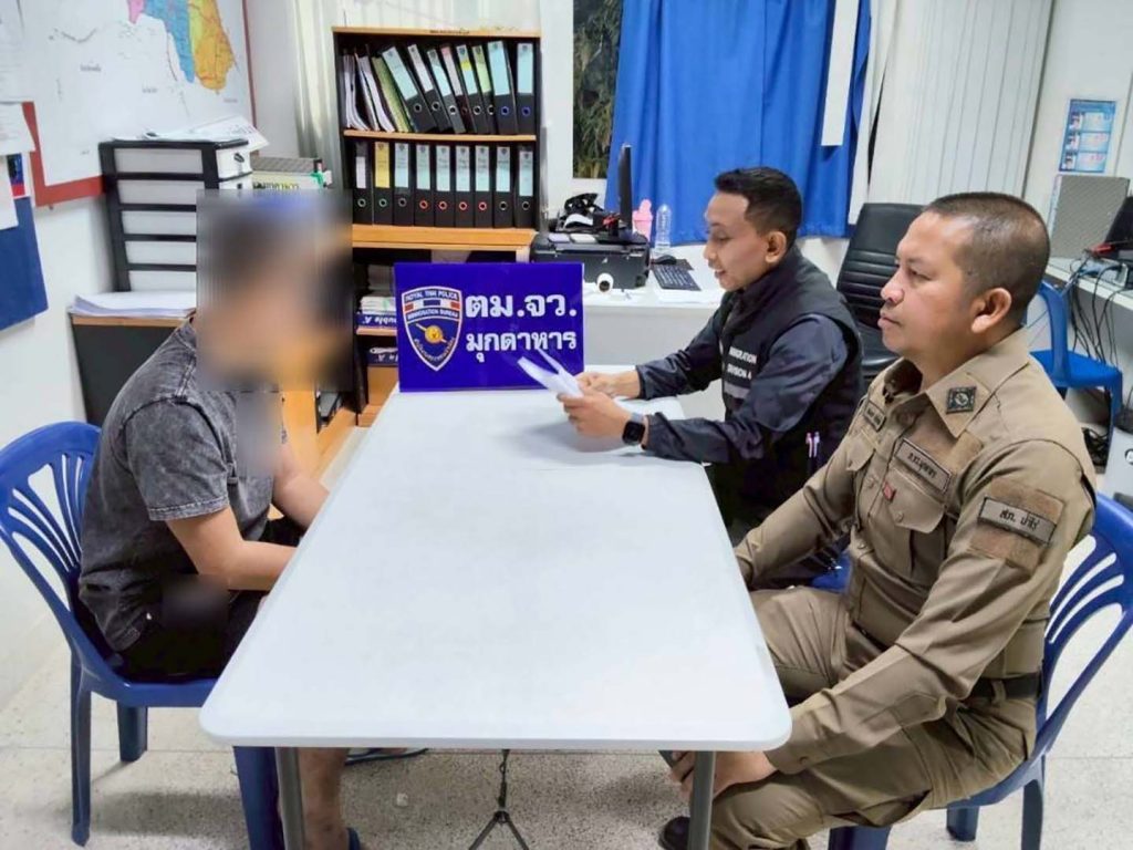 12 01 69 เวลาประมาณ 10.00 น. ภายใต้อำนวยการสั่งการของ พล.ต.ต.ไพรัช พุกเจริญ ผบก.ตม.4, พ.ต.อ. กฤษฎากรณ์ กลิ่นเกสร, พ.ต.อ.มณุวัฒน์ กอสนาน รอง ผบก.ตม.4 และ พ.ต.อ.ธนิสร แสงท่านั่ง ผกก.ตม.จว.มุกดาหาร, พ.ต.ท.จตุพล ยันต์นาวา รอง ผกก.ตม.จว.มุกดาหาร และ พ.ต.ต.หญิง กัญสุชญา จีรพุทธางกูร สว.ตม.จว.มุกดาหาร โดย ร.ต.อ.ยศณรินทร์ ดอกไม้ รอง สว.ตม.จว.มุกดาหาร พร้อม เจ้าหน้าที่ชุดสืบสวนฯ ตม.จว.มุกดาหาร