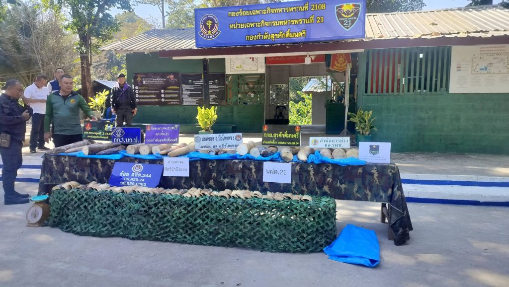 บึงกาฬ ทหารพรานจับ 2 หนุ่ม รับจ้างขนงาช้าง 9 กระสอบ หนักกว่า 169 กก. ริมโขง