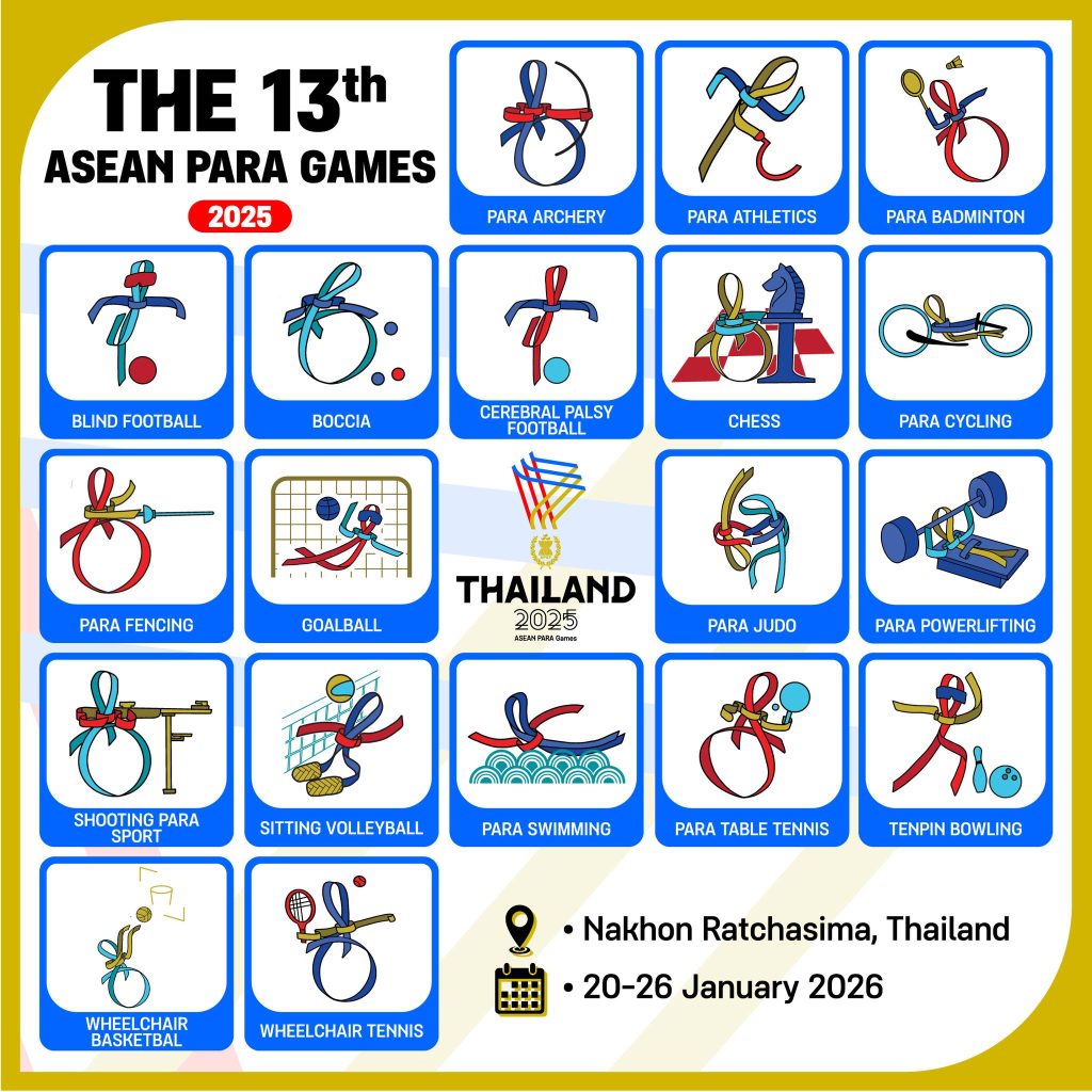 ร่วมส่งแรงใจเชียร์นักกีฬาพาราจากทุกชาติอาเซียน ในศึก อาเซียนพาราเกมส์ ครั้งที่ 13 โดยสามารถติดตามการถ่ายทอดสดการแข่งขันได้ที่ NBT, T Sports 7, PPTV 36 และ TrueVisions Now พร้อมติดตามโปรแกรมการแข่งขันและข้อมูลเพิ่มเติมได้ที่ www.aseanparagames2025.com และ facebook: ASEANParaGamesThailand2025