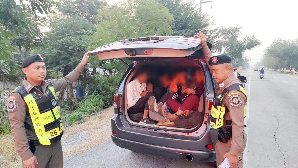 เจ้าหน้าที่จึงส่งสัญญาณให้หยุดเพื่อขอตรวจค้น พบภายในรถมีแรงงานต่างด้าว 13 คนรวมคนขับ เป็นชาย 9 คนและหญิง 4 คน ตรวจสอบเบื้องต้นมีหนังสือรับรองรายการทะเบียนประวัติของต่างด้าว ที่ได้รับอนุญาตให้อยู่ในราชอาณาจักรเป็นกรณีพิเศษ 3 คน เป็นหญิง 2 คน ชาย 1 คน นอกนั้นมีเอกสารที่ยังอยู่ระหว่างตรวจสอบไม่มีเอกสารใดๆเป็นหญิง 1 คน