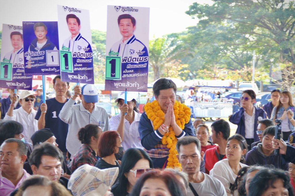 เช้าวันนี้ ที่บริเวณสวนเฉลิมพระเกียรติ 80 พรรษาฯ เทศบาลนครสกลนคร อ.เมือง จ.สกลนคร นายพินิตเมธ ทีฆธนานนท์ หรือตั้ม ผู้สมัคร สส.สกลนคร เขต 1 สกลนคร เบอร์ 1 พรรคภูมิใจไทยและเป็นหนึ่งในตัวเต็งผู้สมัคร หนุ่มรุ่นใหม่ไฟแรง อดีต ส.อบจ.2 สมัย อดีตประธานสภา.อบจ.และ อดีต รองนายก อบจ.สกลนคร เปิดเวทีปราศรัยใหญ่ เชิญชวนพี่น้องประชาชนออกมาใช้สิทธิ์เลือกตั้ง สส.ในวันที่ 8 ก.พ.69 ที่จะมาถึงนี้