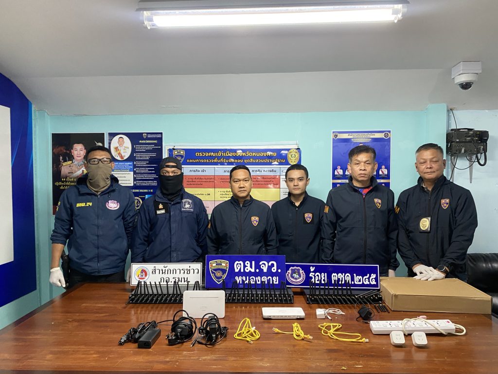 วันนี้ 19 ม.ค.69 ผู้สื่อข่างรายงานว่า พ.ต.อ.นพดล รักชาติ ผกก.ตม.จว.หนองคาย ,พ.ต.ท.ธียาฌพัตท์ รังสิพราหมณกุล รองผกก.ตม.จว.หนองคาย พ.ต.ท.อภิชาติ คลธา สว.ตม.หนองคาย พร้อมด้วยเจ้าหน้าที่จำนวนหนึ่ง ลุยตรวจสอบห้องพัก เลขที่ 989 ต.ในเมือง อ.เมืองหนองคาย ของรีสอร์ทแห่งหนึ่งในเขตเทศบาลเมืองหนองคาย ยึดอุปกรณ์ SIMBOX ของเครือข่ายสแกมเอมร์ จำนวน 3 เครื่อง พร้อมเครื่องกระจายสัญญาณอินเทอเน็ต 2 เครื่อง หลังได้รับแจ้งจากเจ้าของห้องพักว่าตรวจพบมีผู้มาเช่าและลักลอบติดตั้งไว้