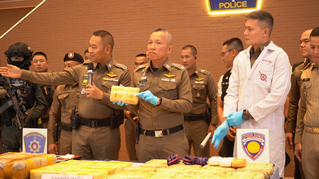 ผู้บัญชาการ ตร.ภ.7 แถลงผลจับกุมยาเสพติด 399,600 เม็ด