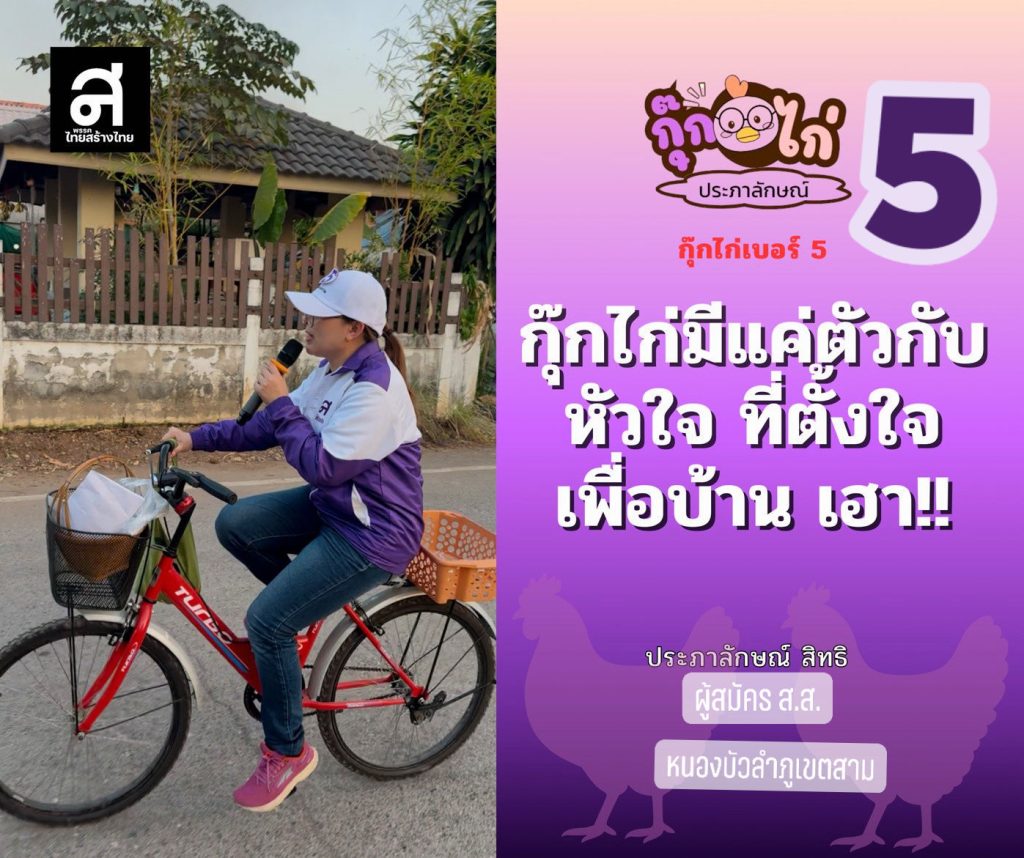 ทุกครั้งที่ สจ.กุ๊กไก่ หรือ นางสาวประภาลักษ์ สิทธิ ผู้สมัคร ส.ส.พรรคไทยสร้างไทย เบอร์ 5 ผู้หญิงตัวเล็กคนนี้จะเดินเข้าหาแบบเคาะประตูบ้าน เดินตลาดแต่เช้าตรู่เพื่อแนะนำตัวขอโอกาสพี่น้องในเขตเลือกตั้งที่ 3 เทใจกำลังใจเลือก กุ๊กไก่ ลูกสาวหล่าคนนี้ จะได้เอาปัญหาความเดือดร้อนของพี่น้องประชาชนคนหนองบัวลำภู โดยเฉพาะเกษตรกรที่ปลูกอ้อยกันถึงร้อยละกว่า 60 นับวันมีแต่จะมอบมรดกการเป็นหนี้ให้กับลูกหลาน ซึ่งเชื่อแน่ว่าพรรคไทยสร้างไทย ที่คุณหญิงสุดารัตน์ เกยุราพันธ์ หรือ คุณหญิงหน่อย เป็นแม่ทัพและมีแคมแปญหรือนโยบายที่ดลใจพี่น้องประชาชนกันทั้งนั้น เลือกกุ๊กไก่ ไว้เป็นคนคอยรับใช้จะไม่ทำให้พ่อแม่พี่น้องผิดหวังแน่นอนค่ะ กุ๊กไก่ ผู้สมัคร ส.ส.เขต 3 เบอร์ 5 พรรคไทยสร้างไทย ขอการันตีจะขอทำหน้าที่แทนทุกท่านด้วยหัวใจที่มุ่งมั่นและทุ่มเท ค่ะ