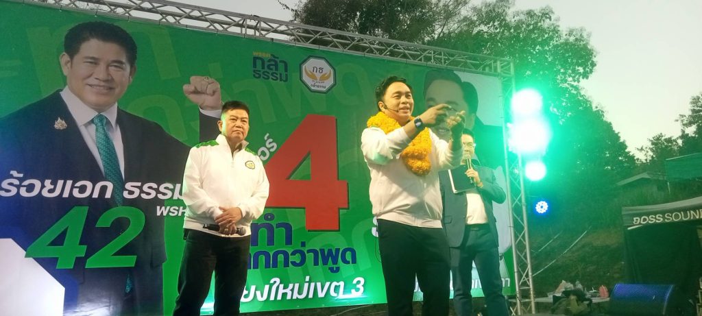 เมื่อวันที่ 19 มกราคม 2569 ที่บ้านสหกรณ์ 2 ต.สหกรณ์ อ.แม่ออน จ.เชียงใหม่ พ.ต.อ.ธงชัย กรรณิกา อดีต ผกก.สภ.ดอยสะเก็ด ผู้สมัครส.ส.บัญชีรายชื่อ หรือปาร์ตี้ลิสต์พรรคกล้าธรรม หมายเลข.42 ได้ปราศรัยช่วยนายธนากร สุภาษา หรือเต้ ผู้สมัคร ส.ส.เชียงใหม่ เขต 3 หมายเลข 4 พรรคกล้าธรรม หาเสียง