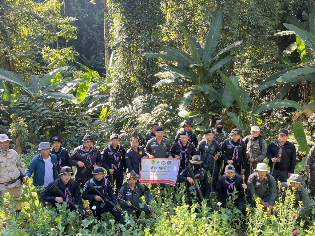 สภ.ทุ่งช้าง จ.น่าน สนธิกำลังปฏิบัติการลาดตระเวนตรวจพิสูจน์ทราบและตัดทำลายพืชเสพติด (ฝิ่น) พบแปลงกว่า 0.28 ไร่ ยึดปืนแก๊ป 1 กระบอก