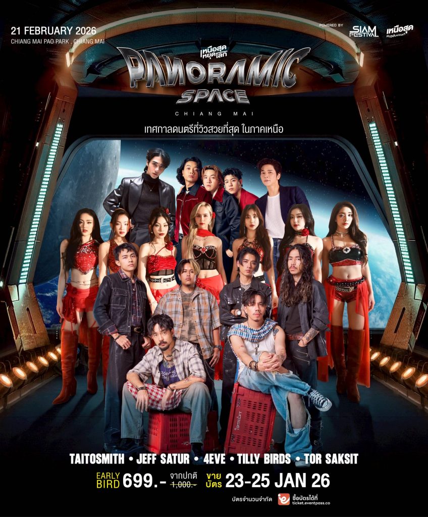 21 กุมภาพันธ์ 69นี้ ในชื่อที่การันตีความสนุกได้เพราะจัดมาทุกปีโดย บริษัท สยาม เฟสติวัล จำกัด เจ้าเดิม นั่นคือ เหนือสุดหยุดโลก ปีนี้เขามีในธีม Panoramic Space ขนเอาศิลปินดังระดับตัวเทพของเมืองไทยให้ชาวเชียงใหม่และนักท่องเที่ยวได้สนุกกัน Taitosmith / Jeff Satur / 4EVE / Tilly Birds / โต๋ ศักดิ์สิทธิ์ เรียกว่าหลากหลายสไตล์ รองรับหลากหลายวัย