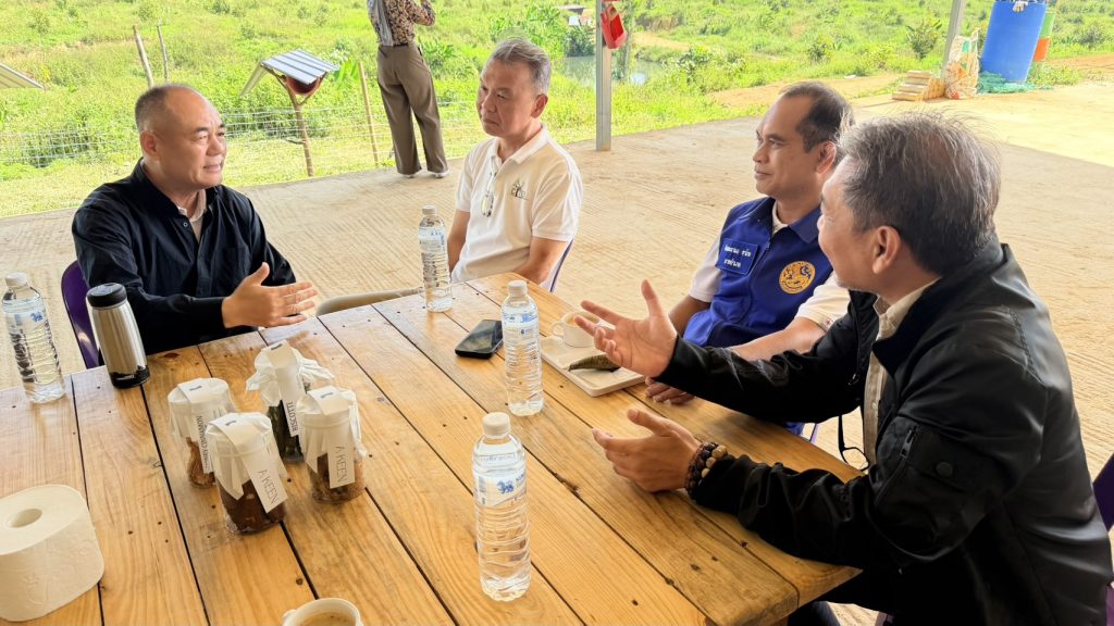 เยี่ยมชมการดำเนินงานของสวนทุเรียนนายเฉลิมศักดิ์ จูฑะมงคล ผู้ประกอบสวนทุเรียนชาวอำเภอเบตง ที่ร่วมลงทุนกับนายซือต้า เกอ นักลงทุนชาวจีน พร้อมแลกเปลี่ยนปัญหา และอุปสรรคในการประกอบอาชีพด้านการเกษตร สนับข้อมูลการปลูกทุเรียน การพัฒนาการเกษตรทฤษฎีใหม่ การใช้ปุ๋ยหมัก การบริหารจัดการน้ำในสวนทุเรียนด้วยการควบคุมการเปิด-ปิดน้ำอัจฉริยะ ซึ่งจะช่วยให้ผลผลิตได้มาตรฐาน ปูทางสู่การขอการรับรองมาตรฐาน GAP ซึ่งจะช่วยเพิ่มขีดความสามารถในการแข่งขัน และขยายตลาด ทั้งในประเทศและต่างประเทศ ในอนาคต