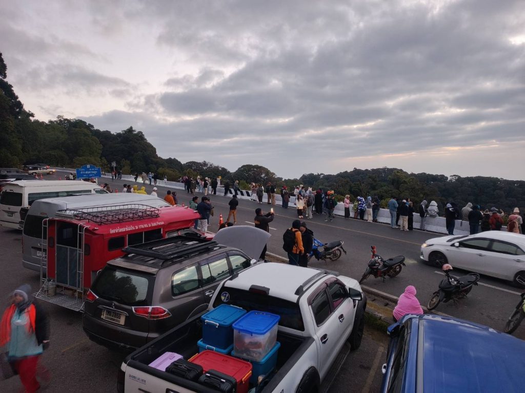 อากาศหนาวต่อเนื่อง อุณหภูมิต่ำสุด 4 องศา ยอดหญ้าติดลบ -0.8 องศา เกิดเหมยขาาบเกาะแผ่นไม้และยอดหญ้าที่ยอดดอย นักท่อ่งเที่ยวยังคงคึกคักเหมือนเดิม