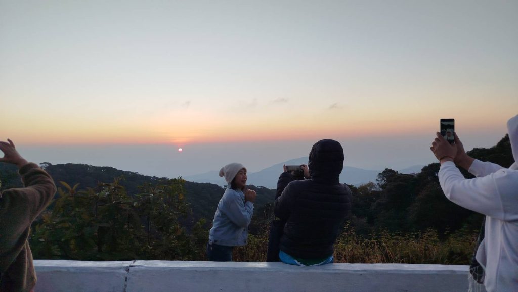 อากาศหนาวอุณหภูมิเพิ่มขึ้นเล็กน้อยอุณหภูมิต่ำสุด 2 องศา แต่ยังคงหนาวอยู่ นักท่องเที่ยวได้สัมผัสอากาศหนาว ชมแสงอาทิตย์ยามเช้า ทะเลหมอกที่สุดสวย ในเขตอุทยนแห่งชาติดอยอินทนนท์