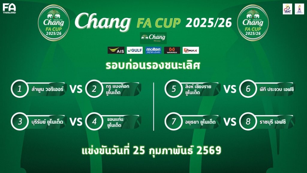 การแข่งขันฟุตบอล ช้าง เอฟเอ คัพ 2025/26 มี 8 ทีม มีดังนี้
