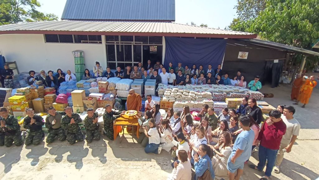 หลวงพ่อสายทอง เตชะธัมโม พระเกจิชื่อดังแห่งวัดห้วยกุ่ม อ.เกษตรสมบูรณ์ จ.ชัยภูมิ นำคณะลูกศิษย์ผู้มีจิตศรัทธา ร่วมทำบุญบริจาค ข้าวสาร อาหารแห้ง ยารักษาโรคและแผงโซล่าเซลล์พร้อมวัตถุมงคลมอบแด่พี่น้องทหารชายแดนจ.สุรินทร์ เมื่อวันที่ 28 มกราคม 2569 ผุ้สื่อข่าวรายงานว่า หลวงพ่อสายทอง เตชะธัมโม เกจิชื่อดังแห่งวัดห้วยกุ่มฯ นำคณะลูกศิษย์ผู้มีจิตศรัทธาพร้อมครอบครัวฉางข้าวจังหวัดขอแก่น,โคราช ห้างบิ๊กวันโฮมมาร์หนองบัวระเหว คณะอดีตพยาบาลโรงบาลชัยภูมิรวมถึงผู้ใจบุญที่ร่วมบริจาคทั้งเอ่ยนามและไม่ได้เอ่ยนามและผู้สื่อข่าวจังหวัดชัยภูมิ รวมกว่า 100 คน ที่ร่วมทำบุญบริจาคสิ่งของ ข้าวสาร อาหารแห้ง ยารักษาโรคพร้อมแผงโซล่าเซลล์ ไปมอบให้กับพี่น้องทหารๆหน้าแนวเขตชายแดนไทย-กัมพูชาที่วัดโพธิวนาราม ตำบลตาเมียง อำเภอพนมดงรัก จังหวัดสุรินทร์ โดยมี พ.ท.อดิเรก วสันต์สกุล ผู้บังคับกองพันทหารราบที่ 24 ( ผบ.พัน.ร.24 )พร้อมด้วย ร.อ.รัฐธรรมนูญ ไตรยวงศ์ นายทหารฝ่ายส่งกำลังบำรุง กองพันทหารราบที่ 24 (ฝกบ.พัน.ร.24) นำกำลังพลส่วนหนึ่ง ให้การต้อนรับ ในการนี้ หลวงพ่อสายทอง เตชะธัมโม ยังได้มอบวัตถุมงคล “ รุ่นเขมรแตกทัพ”พร้อมพรมน้ำมนต์ แด่พี่น้องทหารไทย หน้าแนวเพื่อเป็นขวัญกำลังใจในรักษาอธิปไตยของชาติไทยในครั้งนี้ด้วย ขณะที่พัน้องทหารหน้าแนวก็ได้ฝากขอบคุณผู้ใจบุญทุกๆท่านที่มอบสิ่งของมาให้ในครั้งนี้ จึงขอสาธุกับผู้มีจิตศรัทธาในครั้งนี้ด้วยเทอญ