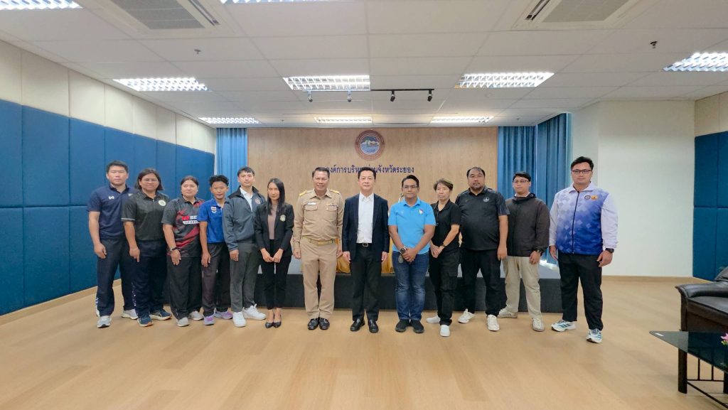 เมื่อวันที่ 28 ม.ค.69 ที่ห้องประชุม อบจ.ระยอง ต.เนินพระ อ.เมือง จ.ระยอง ดร.ธนศร ดอกเดื่อ ท่องเที่ยวและกีฬาจังหวัดระยอง นำนักกีฬาจาก 17 ชนิดกีฬา จำนวน 121 คน และผู้ฝึกสอน 27 คน เข้าพบนายกิตติ เกียรติ์มนตรี รองนายก อบจ.ระยอง รับมอบโอวาทและเงินสนับสนุน จำนวน 285,000 บาท เพื่อเป็นขวัญกำลังใจในการเดินทางเข้าร่วมการแข่งขันกีฬานักเรียน นักศึกษาแห่งชาติ ครั้งที่ 45 “คนบุรีรัมย์เกมส์” ระหว่างวันที่ 4-12 กุมภาพันธ์ 2569 นี้