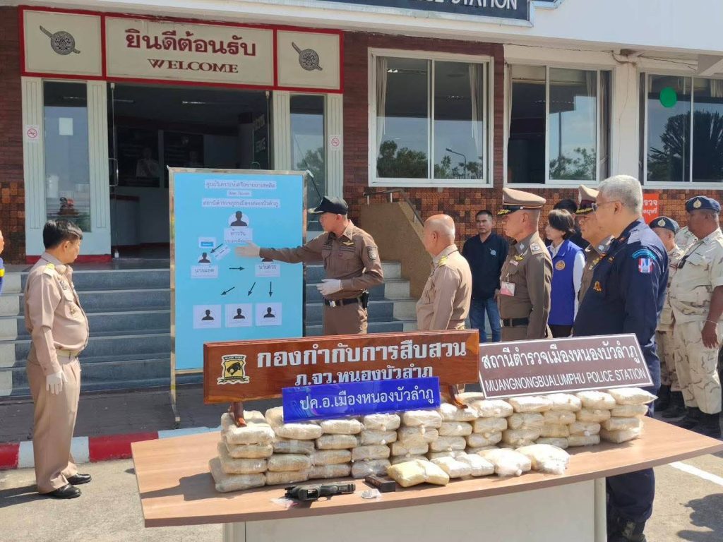 เมื่อวันที่ 28 ม.ค.69 เวลา 13.00 น.ณ สภ.เมืองหนองบัวลำภู อำเภอเมืองหนองบัวลำภู จังหวัดหนองบัวลำภู นายสุรศักดิ์ อักษรกุล ผู้ว่าราชการจังหวัดหนองบัวลำภู พร้อมด้วย พล.ต.ต.ไกรสมุทร ทาโบราณ ผบก.ภ.จว.หนองบัวลำภู นายศศิน พัฒนภิรมย์ รองผู้ว่าราชการจังหวัดหนองบัวลำภู พ.ต.อ.กริช ปัตลา รอง ผบก.ภ.จว.หนองบัวลำภู พ.ต.อ.รัตนสุข คำวงศ์ รอง ผบก.ภ.จว.หนองบัวลำภู นายเตชิต ทรงบุญศาสตร์ นายอำเภอเมืองหนองบัวลำภู พ.ต.อ.ปรัชญามาศ ไชยสุระ ผกก.สภ.เมืองหนองบัวลำภู พ.ต.ท.เจษฎา ศรีกวนชา รอง ผกก.สส.สภ.เมืองหนองบัวลำภู พร้อมด้วย เจ้าหน้าที่ตำรวจชุดสืบสวน สภ.เมืองหนองบัวลำภูร่วมกันแถลงผลการจับกุมยาเสพติดรายสำคัญ ในพื้นที่อำเภอเมืองหนองบัวลำภู หลังเฝ้าติดตามพฤติการณ์มานาน