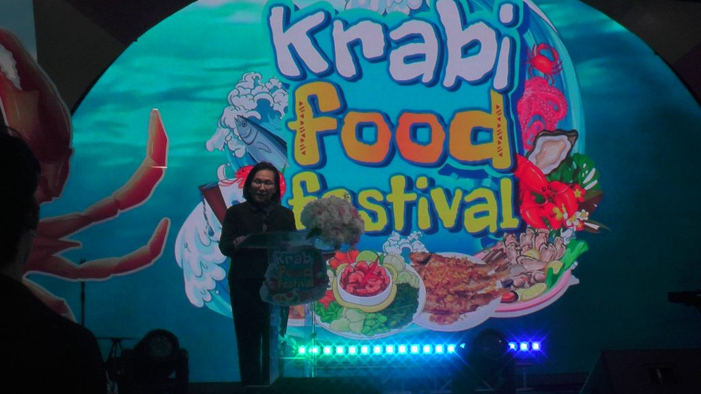 การนี้นายอังกูร ศีลาเทวากูล ผู้ว่าราชการจังหวัดกระบี่ กล่าวเปิดงานดังกล่าวมีใจความว่า จังหวัดกระบี่มีทรัพยากรธรรมชาติที่หลากหลาย และมีวัฒนธรรมการบริโภคอาหารพื้นถิ่น และสินค้าอัตลักษณ์ที่มีเสน่ห์เฉพาะตัว จังหวัดกระบี่เล็งเห็นถึงผลประโยชน์ในระยะยาวของการพัฒนาช่องทางการตลาดให้กับผู้ประกอบการภายในจังหวัด จึงได้บูรณาการร่วมกับภาครัฐและภาคเอกชนภายในจังหวัด จัดกิจกรรมกระตุ้นเศรษฐกิจเพื่อขยายช่องทางการค้าและกระตุ้นการท่องเที่ยวในจังหวัด ซึ่งงานดังกล่าวเป็นการคัดสรรสินค้าคุณภาพจากผู้ประกอบการร้านจำหน่ายอาหารทะเล และอาหารพื้นถิ่นของจังหวัดกระบี่ ให้พี่น้องประชาชนชาวจังหวัดกระบี่ ตลอดจนนักท่องเที่ยวชาวไทยและชาวต่างชาติ ได้ซื้ออาหารรับประทานกันในราคาที่พอจับต้องได้ และสามารถเลือกซื้อตามใจชอบอาหารแต่ละเมนูที่หารับประทานไม่ได้บ่อยนัก งานเทศกาลอาหารปลอดภัยจังหวัดกระบี่ในครั้งนี้ จะเป็นส่วนสำคัญของการพัฒนาและสร้างโอกาสใหม่ๆ ให้กับผู้ประกอบการร้านอาหารในจังหวัดกระบี่ เป็นการเปิดประตูสู่การท่องเที่ยวเชิงอาหาร รวมถึงสร้างความประทับใจให้แก่ผู้เข้าร่วมงาน และนักท่องเที่ยวผู้มาเยือนทุกคน