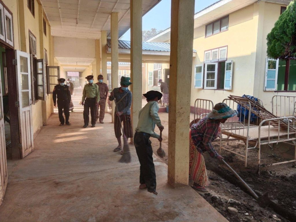 กองทหารเมียนมา เร่งทำความสะอาดโรงพยาบาลเมืองบอลาแคะ เพื่อให้เปิดใช้งานอีกครั้ง หลังจากถูกปิดตัวลงจากการโจมตีของ ทหารคาเรนนี