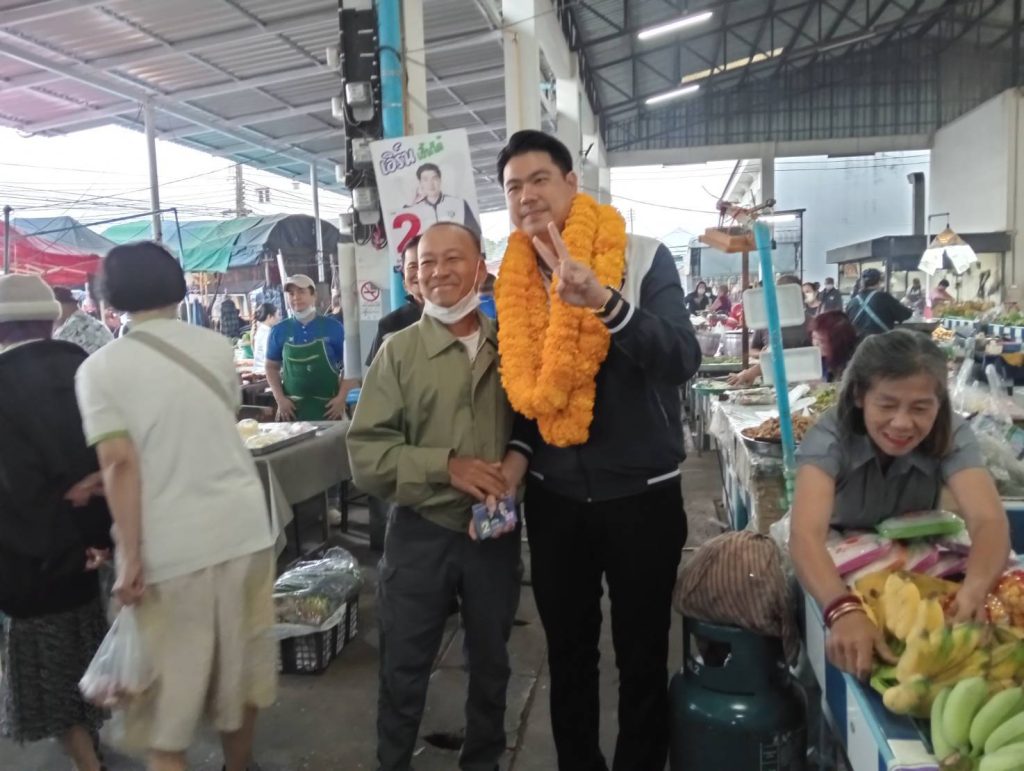 โค้งสุดท้าย…น้องเอิร์น เบอร์ 2 พรรคภูมิใจไทย อ้อนพ่อค้า+แม่ค้าขอคะแนนเลือกตั้ง ตลาดสดคลองโพ อุตรดิตถ์