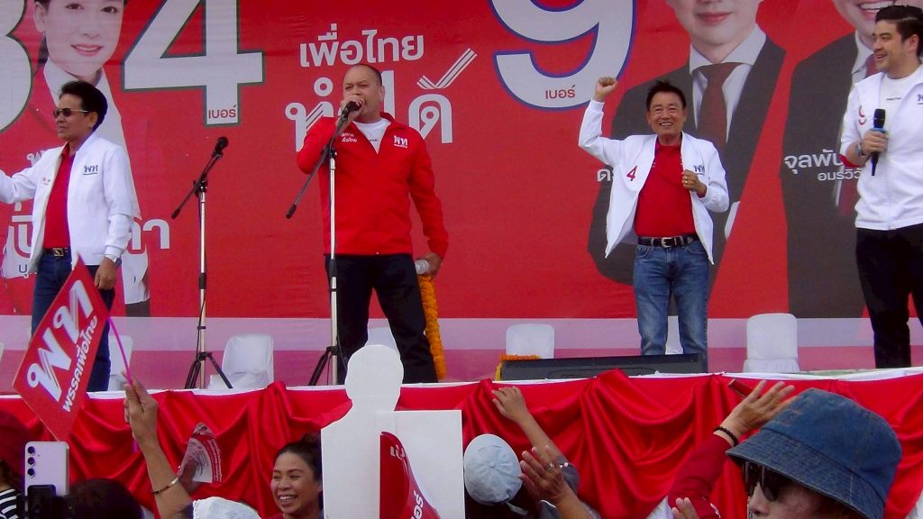 มุกดาหาร – ยศชนัน วงศ์สวัสดิ์ แคนดิเดตนายกรัฐมนตรีพรรคเพื่อไทย ปราศรัยหาเสียงช่วยผู้สมัคร สส. อ้อนขอคะแนนทั้ง 2 เขต