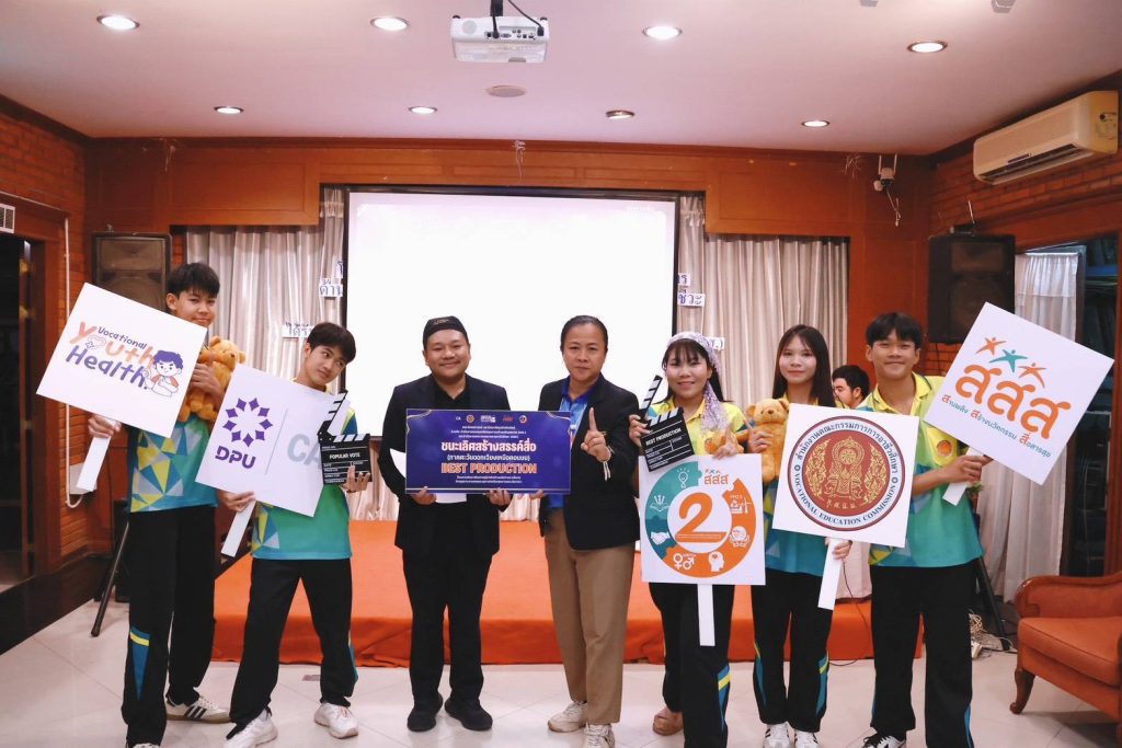 วันที่ 3ก.พ.69 นายมงคล แก้วรอด ผู้อำนวยการวิทยาลัยอาชีวศึกษาหนองคาย เปิดเผยว่า วิทยาลัยอาชีวศึกษาหนองคาย ส่งนักเรียน นักศึกษาวิทยาลัยอาชีวศึกษาหนองคาย แผนกวิชาคอมพิวเตอร์กราฟิกและแผนกวิชาภาษาต่างประเทศธุรกิจ เข้าร่วมการแข่งขันการประกวดสร้างสรรค์สื่อ โครงการพัฒนาศักยภาพผู้นำเพื่อสร้างเครือข่ายการสื่อสารด้านสุขภาวะทางเพศ และสุขภาพจิตในกลุ่มเยาวชนระดับอาชีวะ ระดับภาคตะวันออกเฉียงเหนือตอนบน โดยคณะนิเทศศาสตร์ มหาวิทยาลัยธุรกิจบัณฑิตย์ ร่วมกับ สำนักงานกองทุนสนับสนุนการสร้างเสริมสุขภาพ (สสส.) และสำนักงานคณะกรรมการการอาชีวศึกษา (สอศ.) ได้จัดขึ้น สามารถคว้ารางวัลชนะเลิศระดับภาค ทีม NKVC.CG-Studio คว้า 2 รางวัลใหญ่ เดินหน้าสู่ระดับชาติ ผลงานที่แสดงโชว์ศักยภาพ ดังนี้ รางวัลชนะเลิศ "The Best Project" (เป็นตัวแทนเข้าสู่การแข่งขันระดับชาติ), รางวัล The Best Production และรางวัล Popular Vote ภายใต้การดูแลโดย นางสลักจิต อริยานุวัฒน์ ครูที่ปรึกษา ซึ่งทีม NKVC.CG-Studio ที่ชนะเลิศจะได้เข้าร่วมการแข่งขันในระดับชาติต่อไป #ข่าว วิทยาลัยอาชีวศึกษาหนองคาย #NKVCCGStudio #TheBestProject #อาชีวะสร้างชาติ #หนองคาย