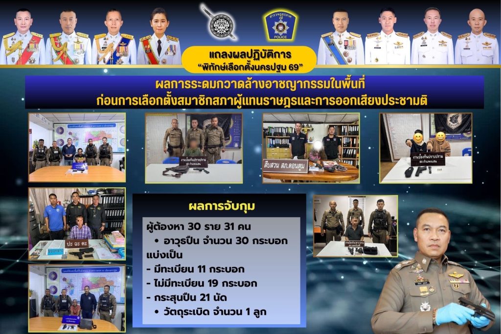 นครปฐม- ผู้การฯนครปฐมเปิดยุทธการ พิทักษ์เลือกตั้งนครปฐม 69 จับปืน ยาเสพติดเพียบ