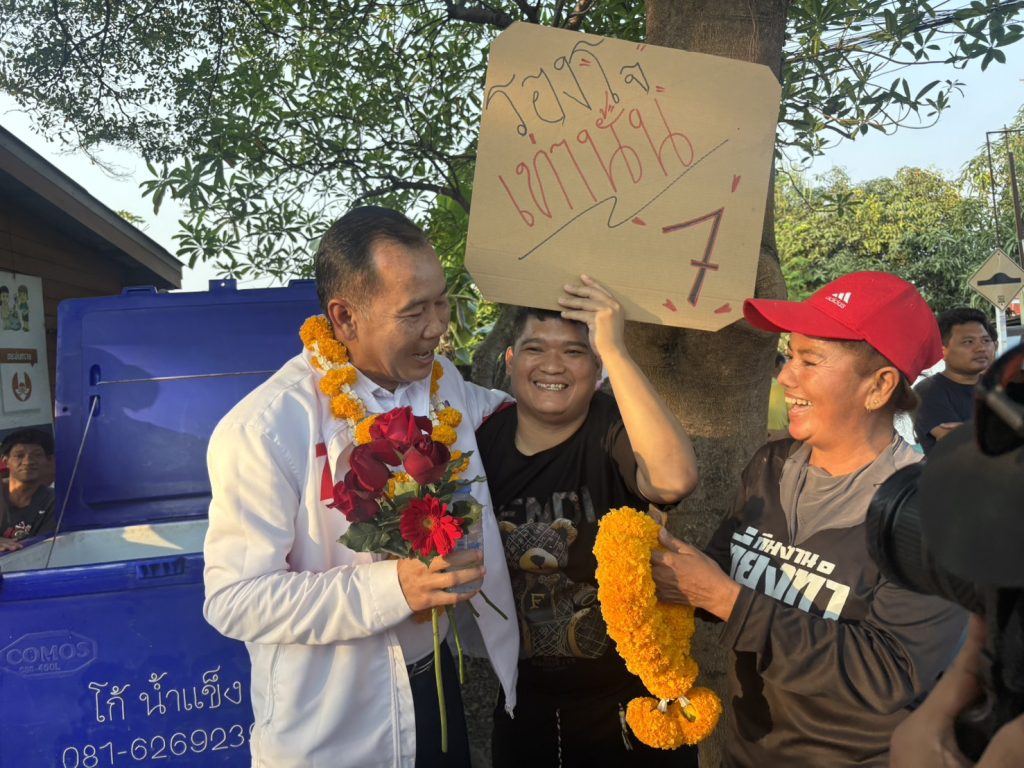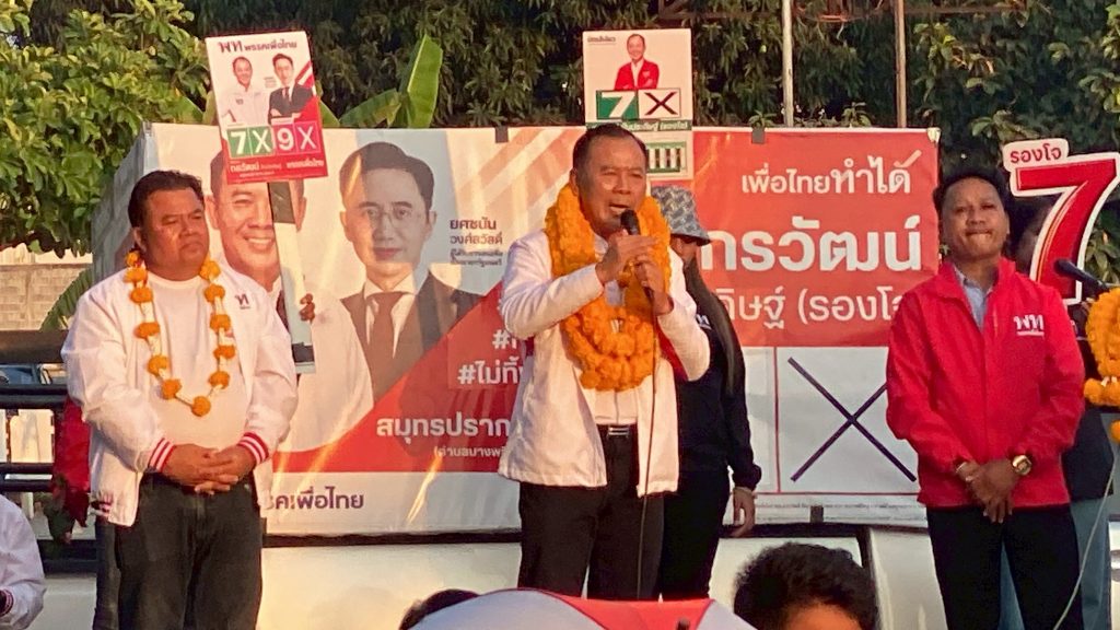 สมุทรปราการ รองโจ ผู้สมัคร สส. พรรคเพื่อไทย เบอร์ 7 ลุยปราศรัย โค้งสุดท้าย ชุมชนหลังวัดหนามแดง ประกาศพร้อมชนทุกปัญหา ดันเขต 4 ตำบลบางพลีใหญ่–บางแก้ว สู่อนาคต