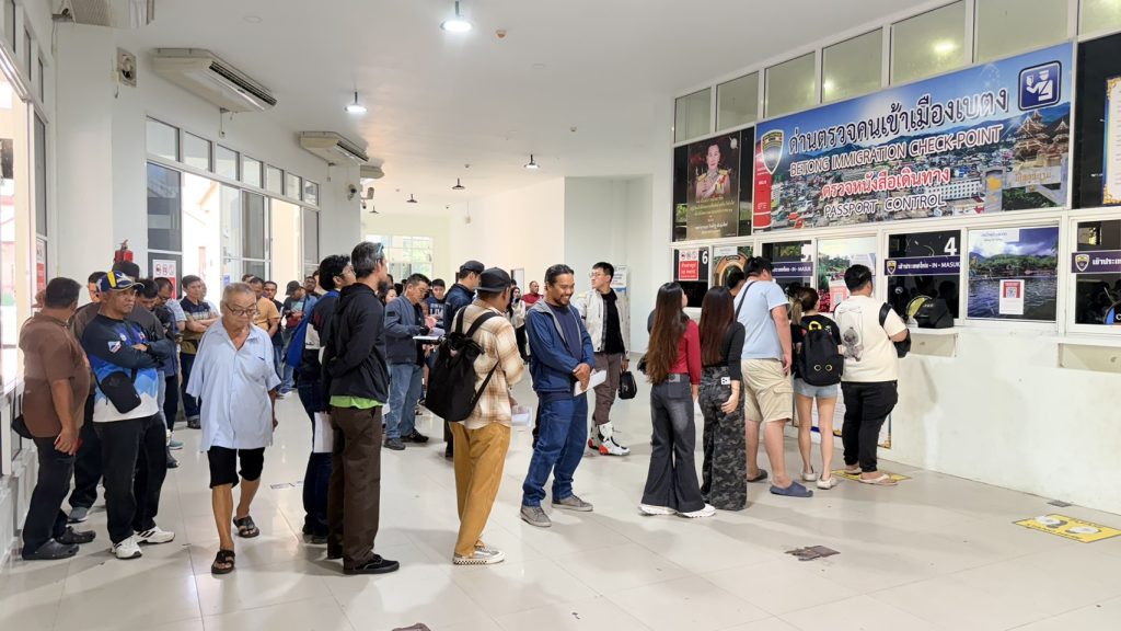 วันนี้ 6 ก .พ. 69 ที่ด่านพรมแดนเบตง อำเภอเบตง จังหวัดยะลา ซึ่งอยู่ตรงข้ามกับด่านบูกิตบือราปิต รัฐเปรัค ประเทศมาเลเซีย แรงงานไทยในประเทศมาเลเซียทยอยเดินทางกลับมาในราชอาณาจักรไทย ผ่านด่านพรมแดนเบตง เพื่อมาใช้สิทธิเลือกตั้งสมาชิกสภาผู้แทนราษฎร (สส.) และร่วมออกเสียงประชามติ ในวันที่ 8 กุมภาพันธ์ 2569 ตามภูมิลำเนาที่ตนมีชื่ออยู่