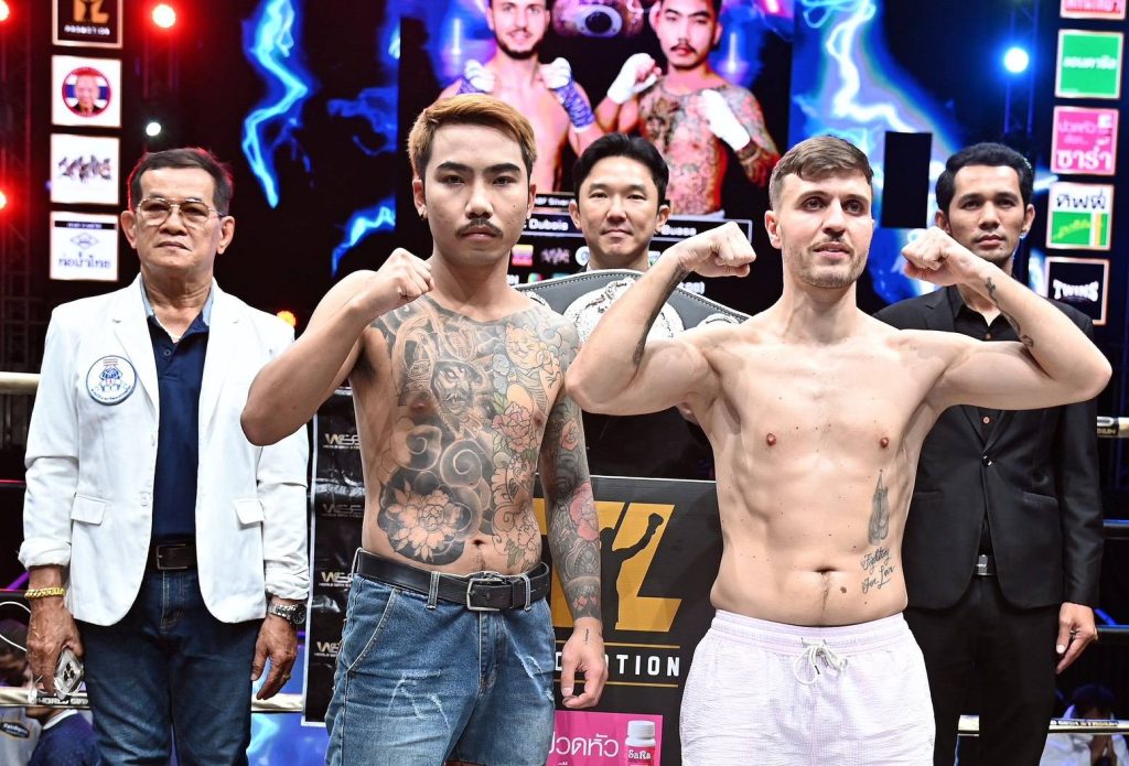 วันนี้ ( 6 ก.พ.69 ) ที่เวทีมวย World Siam Stadium "เสี่ยเอี๊ยง" โปรโมเตอร์ทวีสิน เหล่าสุวรรณวัฒน์ แห่ง TL Boxing Promotion นำคู่มวยที่จะขึ้นชกในรายการ "The Fighter Evolution" ในวันเสาร์ที่ 7 ก.พ.69 โดยจัดคู่เอกป้องกันแชมป์ ABF Superwelterweighter Champion Title ระหว่างเจ้าของเข็มขัดชาวไทย กิตติศักดิ์ กลิ่นษร พบผู้ท้าชิงจากฝรั่งเศส ฟลอร็องต์ เดอร์วิส พร้อมคู่มวยประกอบรายการอีก 6 คู่บวก 3 คู่มวยสตรีทไฟท์ดวลกันยกเดียวจบเข้าตรวจร่างกายกับนายแพทย์ประจำการแข่งขัน โดยผลการตรวจร่างกายนักมวยทุกคนมีสภาพร่างกายที่แข็งแรงพร้อมสำหรับการแข่งขัน จากนั้นนักมวยขึ้นชั่งน้ำหนักตามพิกัด ซึ่งก็ไม่มีปัญหาทุกคนผ่านการชั่งน้ำหนักตามพิกัดที่กำหนด สำหรับคู่มวยสุดเดือดในวันเสาร์ที่ 7 ก.พ.69 มีดังนี้