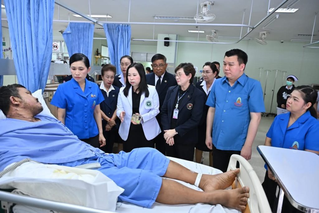 วันที่ 6 กุมภาพันธ์ 2569 นางสาวอโรชา นันทมนตรี ผู้ว่าราชการจังหวัดนครปฐม พร้อมด้วย นางศิริลักษณ์ พึ่งเนียม รองนายกเหล่ากาชาดจังหวัดนครปฐม นางกัญจนา สร้อยอินทรากุล ผู้ช่วยนายกเหล่ากาชาดจังหวัดนครปฐม นายโชติพงศ์ เปล่งวิทยา นายอำเภอเมืองนครปฐม และส่วนราชการที่เกี่ยวข้อง มอบถุงพระราชทานมูลนิธิราชประชานุเคราะห์ และมอบเงินสงเคราะห์ผู้ประสบปัญหาทางสังคมกรณีฉุกเฉิน จำนวน 3,000 บาท จากสำนักงานพัฒนาสังคมและความมั่นคงของมนุษย์จังหวัด ให้แก่ นายชาตรี ผ่านสะอาด ผู้ประสบอัคคีภัย พร้อมให้กำลังใจนางนิภารัตน์ ผ่านสะอาด ที่อาคารอุบัติเหตุ ชั้น 4 โรงพยาบาลนครปฐม