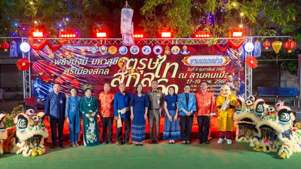 ที่บริเวณลานคนเมือง อ.เมือง จ.สกลนคร เทศบาลนครสกลนคร นางรณิดา เหลืองฐิติสกุล ผวจ.สกลนคร เป็นประธานการแถลงข่าวการจัดงาน”ตรุษไทสกล” จังหวัดสกลนคร ประจำปี 2569 ภายใต้ธีมการจัดงาน “พลังมั่งมี มหาสุขี ศรีเมืองสกลนคร โดยร่วมกับ อบจ.สกลนคร ทน.สกลนครการท่องเที่ยวแห่งประเทศไทย สำนักงานนครพนม สมาคมชาวไทยเชื้อสายจีน เชื้อสายเวียดนาม ภาครัฐภาคเอกชน และตำรวจร่วมกันแถลงข่าว
