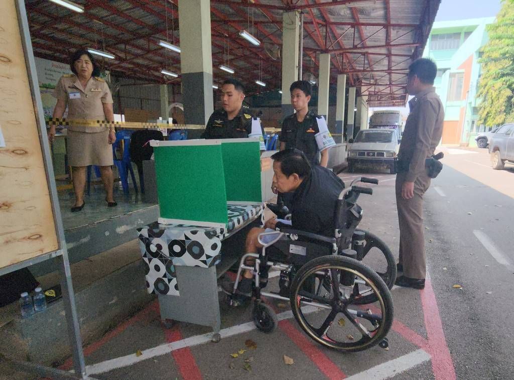 พลังสังคมไร้ทางลาดแต่ไม่ไร้สิทธิ์ เจ้าหน้าที่น่านช่วยผู้พิการเข้าคูหายกโต๊ะ–จัดคูหา เปิดทางสิทธิผู้พิการ เดินหน้าเลือกตั้งเท่าเทียม