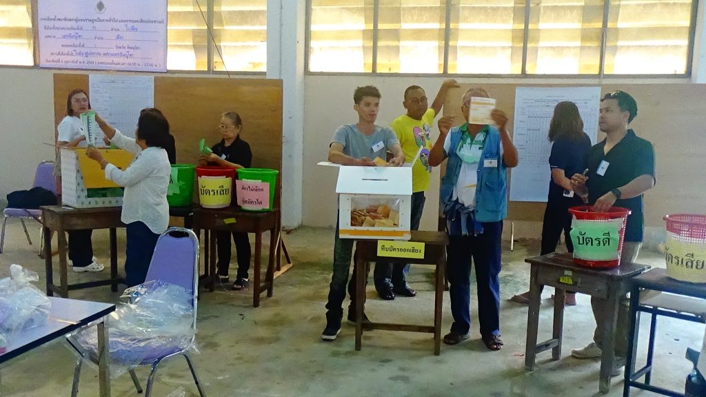 บรรยากาศการนับคะแนนการเลือกตั้ง สส. และออกความเห็นต่อรัฐธรรมนูญ ของ จ.พิษณุโลก เป็นการขับเคี่ยวกันของ 3 พรรคการเมืองทั้ง แดง ส้ม และน้ำเงิน