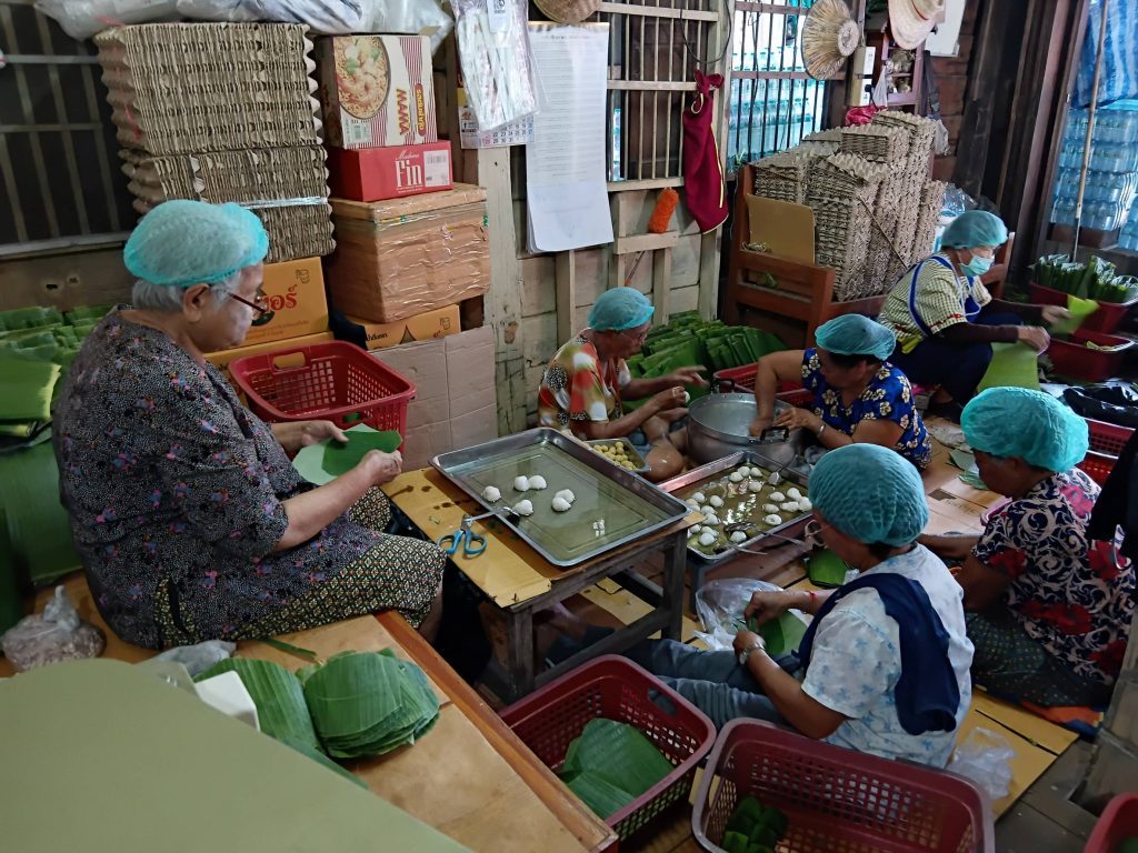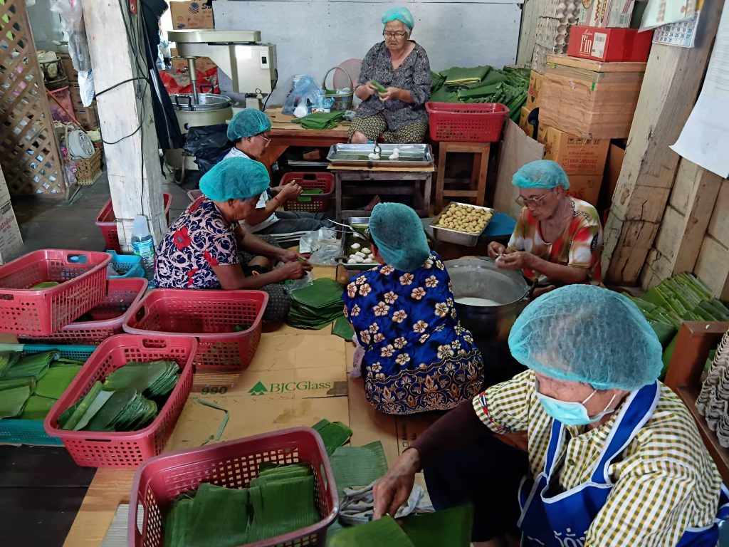 ยายสายทอง อิทนอย อายุ 92 ปี แม่ของพี่น้อยบอกว่า ทำขนมมาตั้งแต่เด็กๆช่วงสมัยสงครามโลกครั้งที่ 2 ช่วงนั้นที่บ้านทำขนมข้าวเต็นนางเล็ด ทหารญี่ปุ่นชอบกินมาก และยังชอบกินน้ำมะพร้าวส่วนเนื้อมะพร้าวไม่กิน ต่อมาก็ทำขนมเทียนจึงห่อเป็นมาตั้งแต่ยังเป็นเด็ก