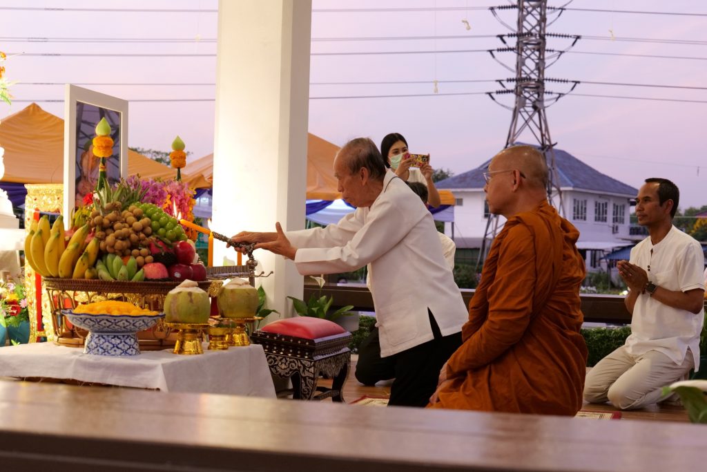 เมื่อแสดงธรรมเทศนาแล้วเสร็จ ผู้อำนวยการโรงไฟฟ้าพระนครใต้ ได้ถวายกันเทศน์ จากนั้นจึงทำพิธีถวายไทยธรรม โดยได้รับเกียรติจากผู้บริหาร กฟผ. และ ผู้แทนจากองค์การบริหารส่วนตำบลบางโปรง และพระสงฆ์ได้นำกรวดน้ำและรับพร โดยในช่วงท้าย พระอาจารย์ผดุง ได้นำดับเทียน และพรมน้ำมนต์ให้กับผู้เข้าร่วมงาน เพื่อความเป็นสิริมงคล