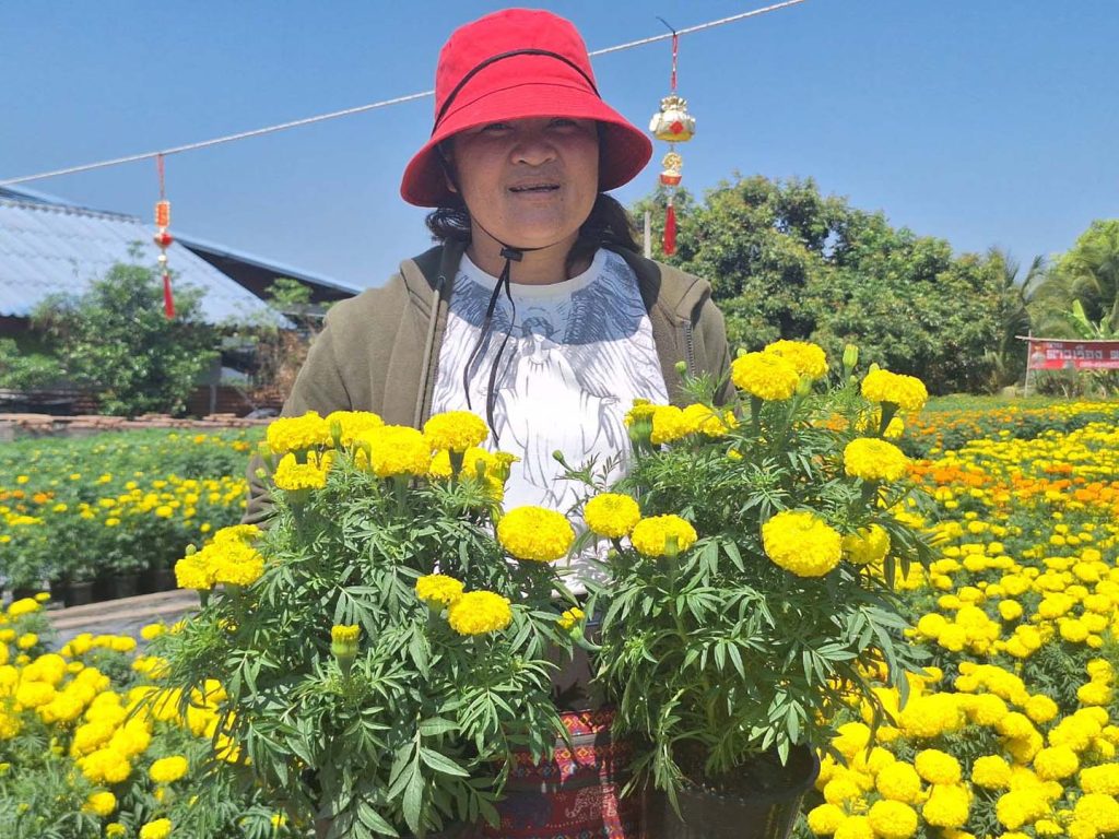 มุกดาหาร ชาวบ้านปลูกดาวเรืองสร้างรายได้ในช่วงตรุษจีน