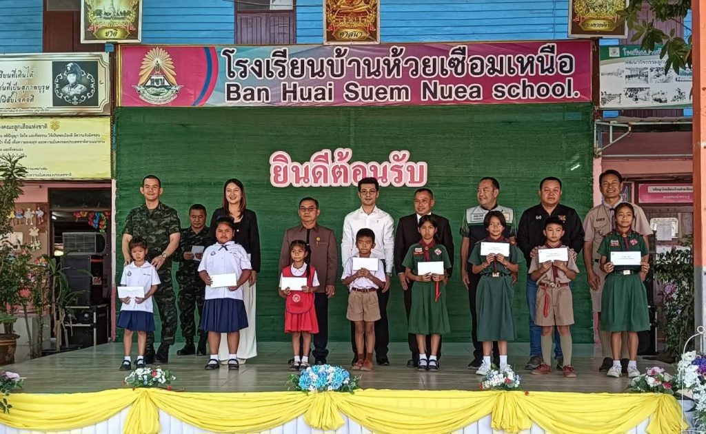 จากนั้นคณะได้เดินทางไปยัง โรงเรียนบ้านห้วยเชื่อมเหนือ ตำบลไคสี อำเภอเมืองบึงกาฬ จัดกิจกรรม CSR มอบทุนการศึกษา จำนวน 15 ทุน เพื่อสนับสนุนโอกาสทางการเรียนรู้ของนักเรียนในพื้นที่ สร้างขวัญกำลังใจแก่เยาวชนและครอบครัว