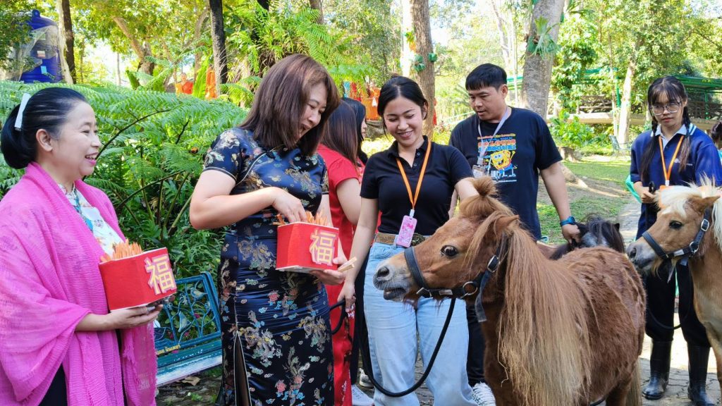สำหรับบรรยากาศเทศกาลตรุษจีน ประจำปีนักษัตรมะเมีย (ปีม้า) ระหว่างวันที่ 13 – 17 กุมภาพันธ์ 2569 ได้มีการจัดกิจกรรม ณ บริเวณสวนดอกไม้มิสเตอร์ยังก์ ไฮไลต์สำคัญคือการนำม้าแคระเชทแลนด์ออกมาเดินออกกำลังกายให้นักท่องเที่ยวได้สัมผัสอย่างใกล้ชิด พร้อมเปิดโอกาสให้ป้อนอาหาร “อั่งเปาตะกร้า” เพื่อเสริมสิริมงคลรับปีใหม่จีน รวมถึงมีการตกแต่งพื้นที่ด้วยบรรยากาศตรุษจีนและกิจกรรมสันทนาการ อาทิ การประดิษฐ์ถุงเงินหรรษา การวาดภาพด้วยน้ำตาล และการปาลูกดอก