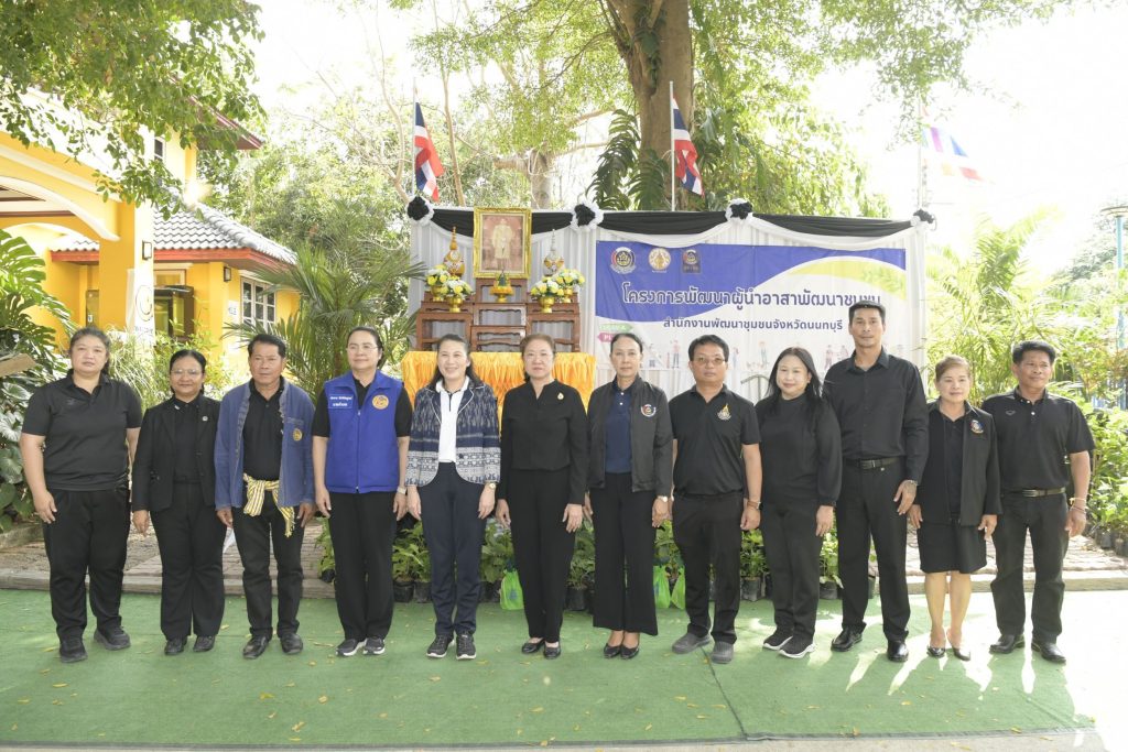 นางระวีพรรณ แก้วเพียงเพ็ญ รองผู้ว่าราชการจังหวัดนนทบุรี เป็นประธานเปิดกิจกรรม “57 ปี ผู้นำ อช. สานพลังจิตอาสา ชุมชนพัฒนาอย่างยั่งยืน ตามหลักปรัชญาของเศรษฐกิจพอเพียง” อ่านสารนายกรัฐมนตรีและรัฐมนตรีว่าการกระทรวงมหาดไทย มอบประกาศเกียรติคุณแก่ผู้นำอาสาพัฒนาชุมชนดีเด่น ที่มีผลงานดีเด่นด้านการขับเคลื่อนงานพัฒนาชุมชน ประจำปี 2568 มอบต้นกล้าผักสวนครัวให้ ผู้นำ อช. มอบผลิตภัณฑ์จากศูนย์เรียนรู้ฯ ให้ครัวเรือนเปราะบาง