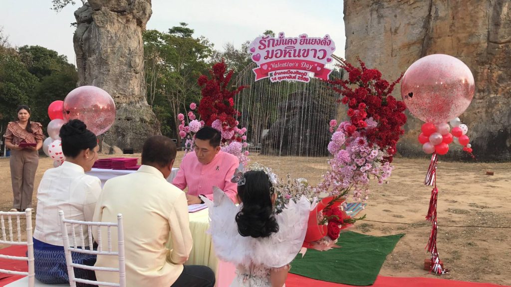 ในท่ามกลางการจัดงานวันวาเลนไทน์ บรรยากาศในปีนี้ที่มีการจัด พิธีจดทะเบียนสมรส รับวาเลนไทน์ “รักมั่นคง ยืนยง ดั่งมอหินขาว” ที่มีอายุเก่าแก่มานานกว่า 197 ล้านปี ในวันที่ 14 กุมภาพันธ์ 2569 ปีนี้ ณ “มอหินขาว” สโตนเฮนจ์เมืองไทย ท่ามกลางประติมากรรมทางธรรมชาติของกลุ่มหินทรายสีขาวขนาดมหึมา โดยมีฉากหลังเป็นท้องฟ้ากว้าง ทำให้บรรยากาศเต็มไปด้วยความอบอุ่นและมนต์ขลัง “การจัดกิจกรรมส่งเสรอมวันแห่งความรักที่ดีต่อกันของคนทั่วโลก และชาวไทย รวมทั้งในพื้นที่ จ.ชัยภูมิ ในปีนี้มีคู่รักร่วมมากกว่า 64 คู่รัก ที่มีความประสงค์ขอมาร่วมงานกิจกรรมจดทะเบียนสมรส บนสุดยอดสโตนเฮนจ์เมืองไทยสวนหินมีอายุเก่าเก่ากว่า 197 ล้านปี ที่ จ.ชัยภูมิ ในปีนี้เป็นจำนวนมาก เปรียบเสมือนสัญลักษณ์ของความรักที่มั่นคง แข็งแกร่ง และยืนยงดุจหินที่อยู่มาได้จนทุกวันนี้ไม่น้อยกว่า 197 ล้านปี” โดยมีนายอนันต์ นาคนิยม ผู้ว่าราชการจังหวัดชัยภูมิ นายอำเภอเมืองชัยภูมิ และหัวหน้าส่วนราชการทุกภาคส่วน ร่วมเป็นสักขีพยานคึกคักกว่าทุกปีที่ผ่านมาอีกด้วย///