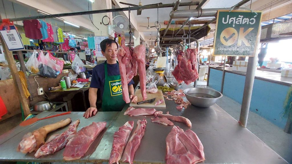 ขณะที่เจ้าของแผงขายหมูสด เปิดเผยว่า ปีนี้หัวหมูราคาเดิมเหมือนปีที่แล้วไม่มีการปรับขึ้นราคาหัวหมูจำหน่ายอยู่ที่ กก. 90 บาท แล้วแต่น้ำหนัก ส่วนเนื้อแดง หมู 3 ชั้น กก.ละ 180 – 190 บาท