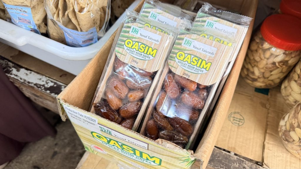 แต่บรรดาพี่ชาวไทยมุสลิมต่างพากันเดินทางมาเลือกซื้ออินทผลัม ที่นำเข้าหลากหลายสายพันธุ์ ทั้งแบบแห้ง แบบนิ่ม และแบบติดก้าน มีทั้งประชาชนทั่วไปที่ซื้อไปรับประทานในครอบครัว หน่วยงานราชการ ภาคเอกชน ที่สั่งซื้อเป็นจำนวนมาก นำไปเป็นของฝาก เพื่อเตรียมพร้อมก่อนถึงวันดูดวงจันทร์ในวันนี้ สำหรับราคาในปีนี้ มีการปรับขึ้นเล็กน้อยตามเกรดและสายพันธุ์ โดยราคาแบบลังเริ่มต้น 700 ไปจนถึงระดับพรีเมียม 4,000 บาท ส่วนราคาปลีกแบบกล่องยังคงเริ่มต้นที่ 50-100 บาท ซึ่งทางร้านยืนยันว่าถึงแม้ราคาจะขยับขึ้นตามอัตราแลกเปลี่ยน แต่ความต้องการของพี่น้องชาวไทยมุสลิมยังคงต้องการอยู่มากเพราะเป็นของทานในเดือนรอมฎอนช่วงละศิลอด