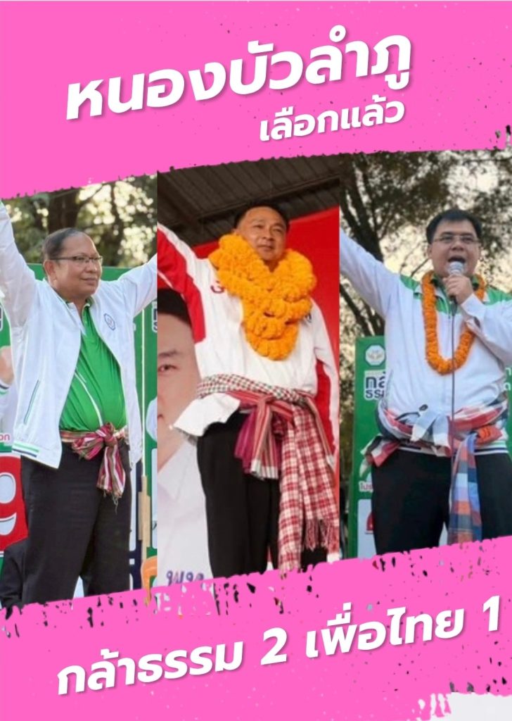 เขต 3 (พรรคเพื่อไทยเสียพื้นที่)เมื่อนายพรณรงค์ นิลนะมะ หรือ สจ.กอล์ฟ พรรคกล้าธรรม มีคะแนน 26,322 คะแนน คนหนุ่มหน้าใหม่ ที่สามารถล้มแชมป์เก่า นายณพล เชยคำแหง ส.ส.หนองบัวลำภู พรรคเพื่อไทย ได้ขาดลอยเช่นกัน ในขณะที่พรรคเพื่อไทย ทั่ง 3 เขตเลือกตั้งทุกครั้งที่ผ่านมาพรรคไทยยึดครองพื้นที่ทั้ง 3 เขตมาโดยตลอด