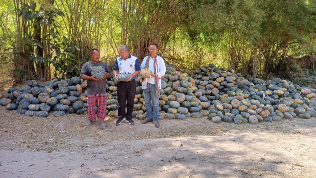 เกษตรกรผู้ปลูกฟักทองเมืองสกลนครโอดครวญ ราคาตกต่ำสุดขีด ก.ก.ะ 5-6 บาทเท่านั้น ผู้บริหาร ทต.กุดแฮดแนะรวมตัวตั้งกลุ่มเพื่อความเข้มแข็ง สามารถต่อรองราคาได้
