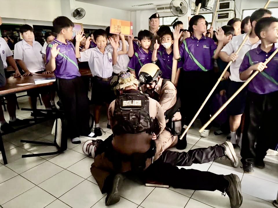 ซักซ้อมแผนเผชิญเหตุกรณีบุคคลใช้อาวุธปืนก่อเหตุยิงในสถานศึกษา