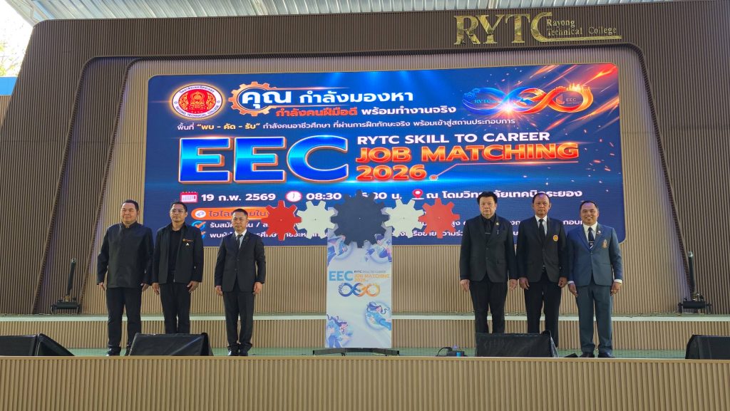 วิทยาลัยเทคนิคระยอง จัดงาน ‘RYTC Skill to Career : EEC job Matching 2026’ ดึงผู้ประกอบการภาคอุตสาหกรรมใน EEC กว่า 100 แห่ง จับคู่ นศ. จบใหม่ สัมภาษณ์งานโดยตรง เพื่อให้ได้คนเข้าทำงานตรงตามที่ต้องการ