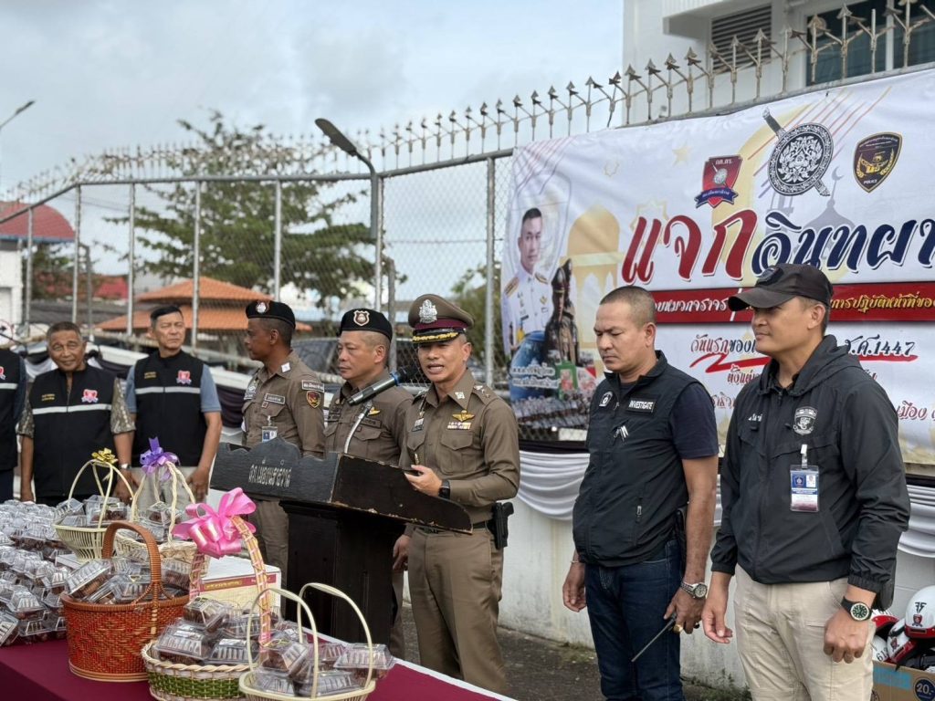 ต้อนรับ “รอมฎอน” ฮ.ศ.1447 ตำรวจโรงพักเมืองฯ มอบความห่วงใยพี่น้องมุสลิม แจกจ่ายอินทผาลัม 1,447 ชุด ผู้ใช้รถใช้ถนน ก่อนจับมือ ก.ตร. มอบหมวกจราจร 34 ใบ เพื่อความปลอดภัยของเจ้าหน้าที่ จร.