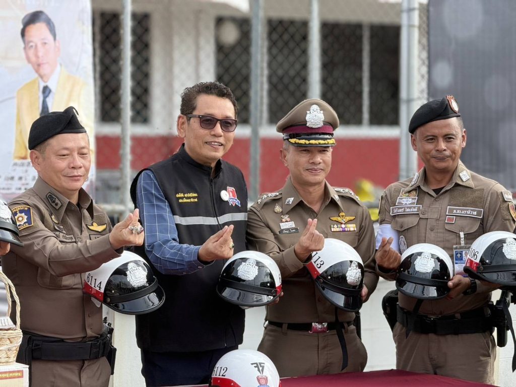 ต่อมา นายสมโชติ เสาร์ศรีอ่อน ประธานคณะกรรมการตรวจสอบและติดตามการบริหารงานตำรวจสถานีตำรวจภูธรเมืองนราธิวาส ( ก.ตร.สภ.เมืองนราธิวาส) พร้อมด้วย พ.ต.อ.ปรัชญา ผกก.สภ.เมืองนราธิวาส และข้าราชการตำรวจในสังกัด ได้ส่งมอบหมวกจราจร จำนวน 34 ใบ ให้แก่เจ้าหน้าที่ตำรวจผู้ปฏิบัติหน้าที่งานจราจร ซึ่งเป็นภารกิจที่มีความเสี่ยงสูงบนท้องถนน เพิ่มอุปกรณ์ป้องกันที่มีคุณภาพ ได้มาตรฐานและยกระดับความปลอดภัยในการปฏิบัติหน้าที่