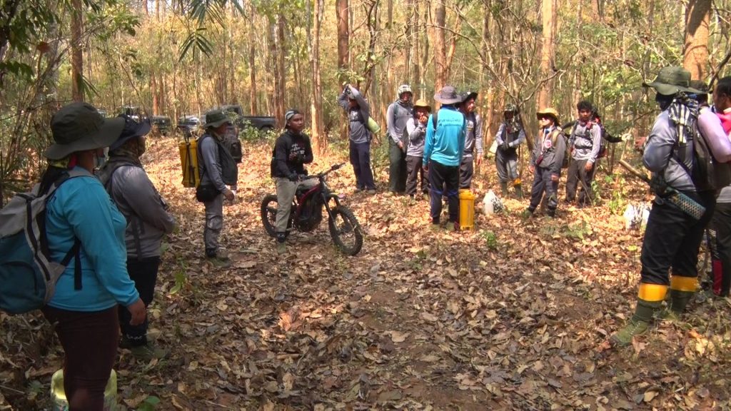 ชุดอาสาดับไฟป่ามูลนิธิกระจกเงาและเจ้าหน้าที่ชุดจิตอาสาดับไฟป่าบ้านห้วยแทงกว่า 50 คน ใช้รถบรรทุกลำเลียงอุปกรณ์ดับไฟป่าเข้าพื้นที่ หลังจากนั้นได้มีการกระจายชุดดับไฟป่าเดินเท้าลำเลียงเครื่องเป่าลม และอุปกรณ์ดับไฟป่า ปีนเขาที่มีลักษณะสูงชันเป็นระยะทางหลายร้อยเมตรเข้าทำแนวกันไปและดับไฟป่า จากการสอบถามชาวบ้านในพื้นที่ทราบว่าป่าชุมชนบ้านห้วยแทงเป็นป่าต้นน้ำ ลำห้วยเลอะ ซึ่งเป็นลำห้วยสาขาของแม่น้ำลี้