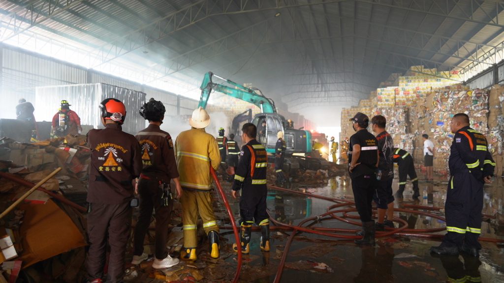 เหตุเพลิงไหม้ รง.กระดาษและขวดรีไซเคิลขนาดใหญ่