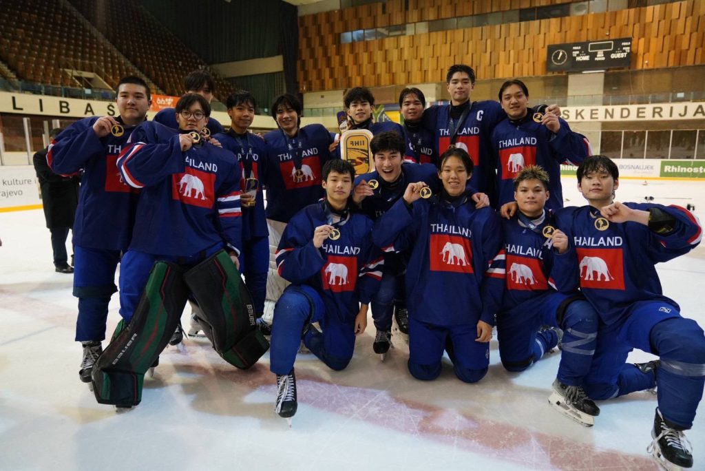 ไทยคว้าแชมป์โลกไอซ์ฮอกกี้ ยู-18 ดิวิชั่น 3 กลุ่มบี ได้สิทธิ์เลื่อนชั้นไปเล่นดิวิชั่น 3 กลุ่มเอ ปีหน้า ด้วยการเฉืแนชนะ ไอซ์แลนด์ 4-3 ในช่วงต่อเวลาพิเศษ ด้าน คู่แฝด ธีธัชธันย์ เหลืองอ่อน คว้ารางวัลกองหน้ายอดเยี่ยม และ คิงส์ตัน จือ จุน พาน นายด่านไทย ได้รางวัลผู้รักษาประตูยอดเยี่ยม ส่วน “กัปตันเจด” ชยพล จรัสกร ได้รับการโหวตจากทีมให้เป็นผู้เล่นยอดเยี่ยมของไทบ ด้าน ธันย์-ธีธรณ์ธันย์ เหลืองอ่อน คู่แฝดอีกคน เป็นกองหลังที่ทำคะแนนสูงสุด และ นักกีฬายอดเยี่ยมในรอบชิงชนะเลิศ