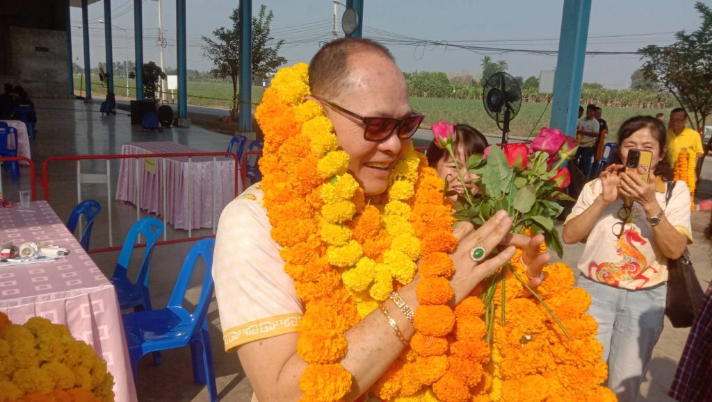 กาญจนบุรี นายกจำลองลงสมัครนายกเทศมนตรีเทศบาลตำบลท่าเสาได้เบอร์ 2 อดีตนายก อบต.ชาวบ้านมอบดอกไม้พวงมาลัยให้กำลังใจจำนวนมาก